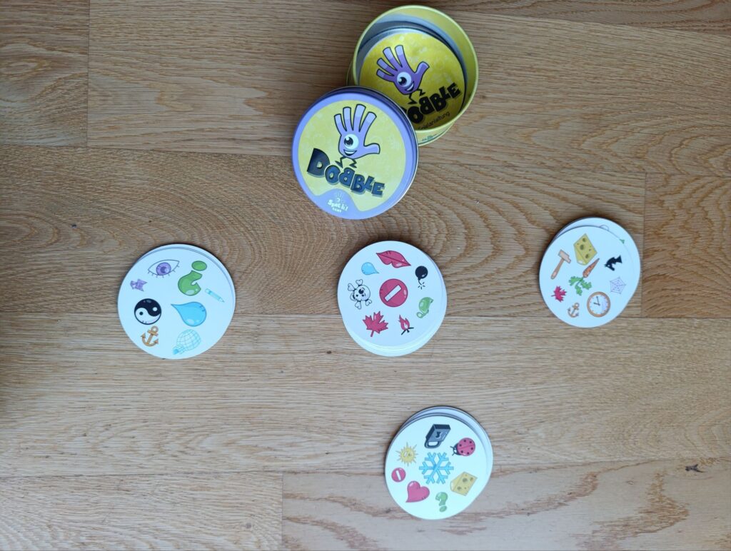 Dobble haben wir schon eine ganze Weile und ich habe es bisher hauptsächlich mit den Größeren gespielt. Mittlerweile kann aber die Kleine mit ihren 5 Jahren auch schon gut mitspielen. Klar, die Großen sind hier durchaus noch überlegen, aber wenn die Kleine und ich alleine spielen, dann hat sie auch ihre Triumpfmomente.